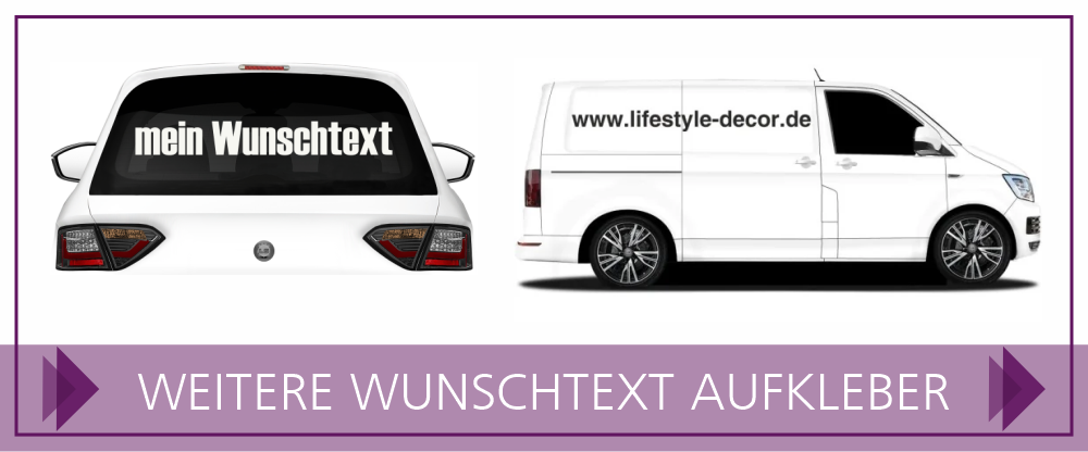 Mit der Kategorie „Wunschtext“ verwandeln Sie Ihr Wohnmobil, Ihren Camper oder Ihren Caravan in ein ganz individuelles Fahrzeug, das Ihre Botschaft auf die Straße bringt. Ob familiär, humorvoll oder inspirierend – Ihrer Kreativität sind keine Grenzen gesetzt.