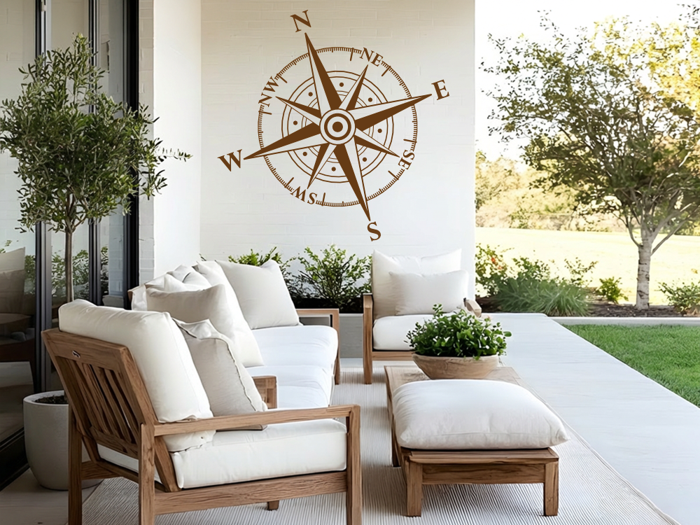 Kompassrose im nordischen Design als Aufkleber für glatte und mittelraue Wände im Außenbereich
