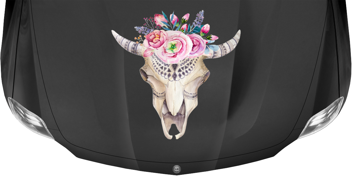 Dieser originelle Aufkleber mit Schädel und bunten Blumen verwandelt ein Auto im Nu in ein außergewöhnliches Fahrzeug. Die Kombination aus einem Hauch des wilden Westens und einem Touch Romantik wird garantiert zum Blickfang.