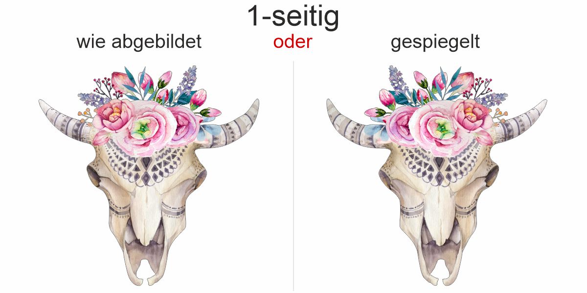 Unsere Autoaufkleber sind ein- und zweiseitig erhältlich. Wenn Sie ein Motiv nur einseitig wünschen, haben Sie die Möglichkeit, wie abgebildet oder gespiegelt zu wählen. Wenn Sie den Autoaufkleber zweiseitig wünschen, müssen Sie in dem Auswahlfeld Größe die entsprechende Größe 2-seitig auswählen. Sie erhalten dann Ihren Aufkleber einmal wie abgebildet und einmal Objekt gespiegelt Text wie abgebildet . Um Ihrer Kreativität freien Lauf zu lassen sowie zur individuellen Fahrzeuggestaltung bieten wir unsere Autoaufkleber ein- und zweiseitig an. So können Sie z. B. zwei unterschiedliche Motive kombinieren oder ein Motiv in verschiedenen Größen bestellen.