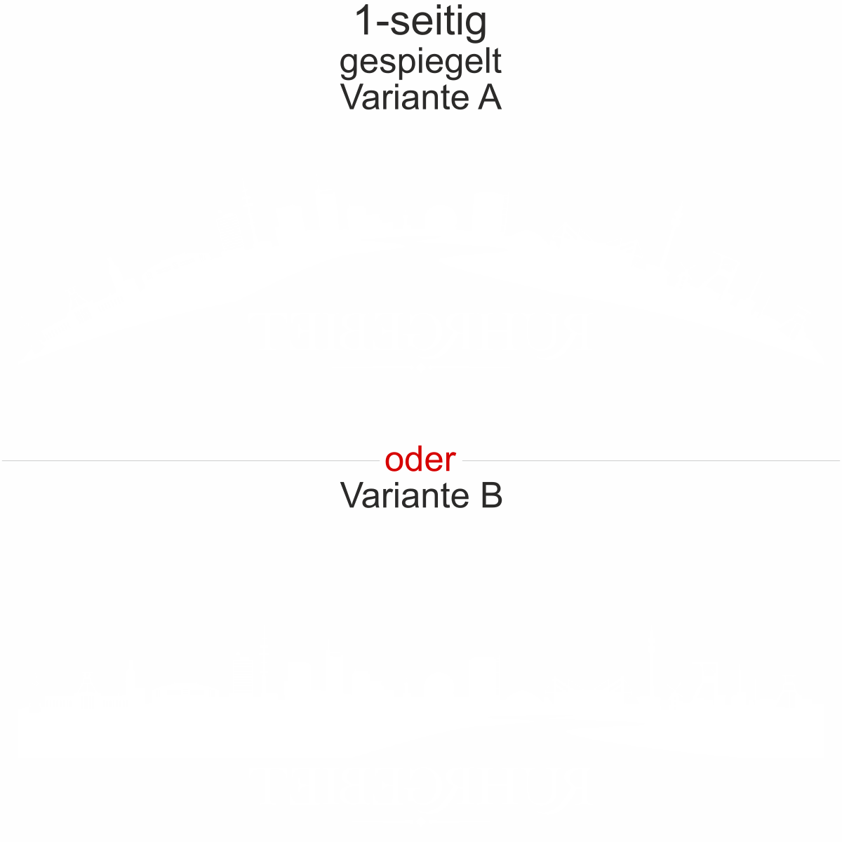 Unsere Autoaufkleber sind ein- und zweiseitig erhältlich. Wenn Sie ein Motiv nur einseitig wünschen, haben Sie die Möglichkeit, wie abgebildet oder gespiegelt und (Objekt gespiegelt Text wie abgebildet) zu wählen. Wenn Sie den Autoaufkleber zweiseitig wünschen, müssen Sie in dem Auswahlfeld Größe die entsprechende Größe 2-seitig auswählen. Sie erhalten dann Ihren Aufkleber einmal wie abgebildet und einmal Objekt gespiegelt Text wie abgebildet.