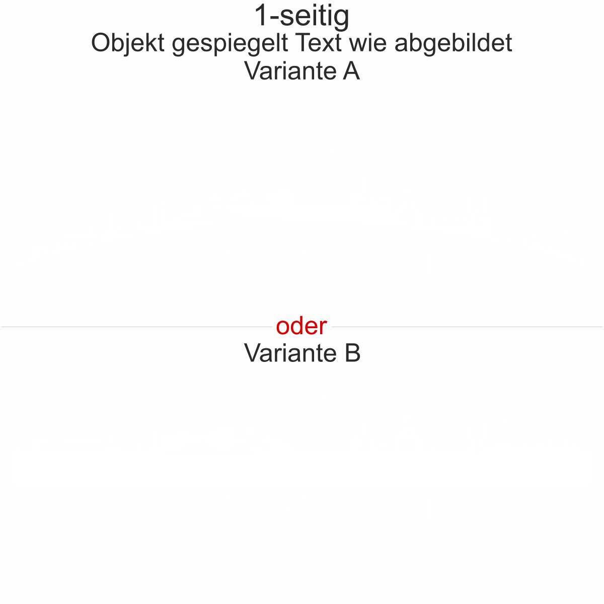 Der Schriftzug Rheinland-Pfalz kann optional angebracht oder ganz nach persönlicher Vorliebe auch weggelassen werden
