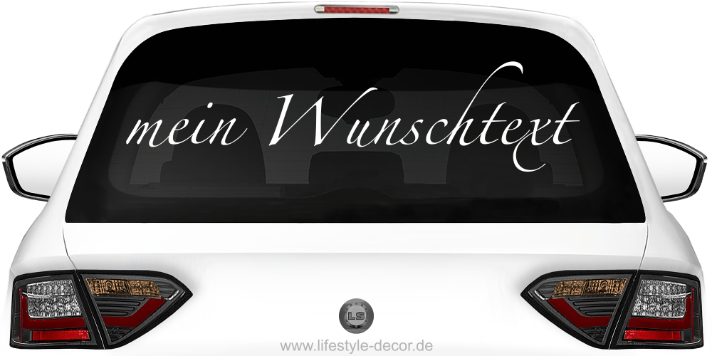 Diese Form des Wunschtextes setzt sich von anderen ab: Der auffällig geschwungene Text überzeugt mit seinen feinen Linien und Schnörkeln. Diesem Anblick kann sich kein Betrachter lange entziehen. Ganz gleich, ob Sie einen Citroen, Ford, Volvo oder Mini fahren, der Namensaufkleber fürs Auto kann für jedes Fahrzeugmodell genutzt werden. Probieren Sie es aus und lassen Sie sich von der Wirkung des einfach erscheinenden Aufklebers fürs Auto überraschen. Damit heben Sie sich von der breiten Masse an Autos im Verkehr ab. Neidische Blicke anderer Verkehrsteilnehmer sind Ihnen garantiert.