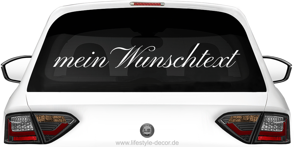 Wenn Sie auf der Suche nach einer Möglichkeit sind, den eigenen Namen, den Namen Ihrer Kinder oder persönliche Begriffe ans Auto zu bekommen, dann können Sie einen Wunschtextaufkleber fürs Auto nutzen. Diese Variante des Stickers fürs Auto überzeugt mit ihren geschwungenen Linien, die den Wunschtext besonders interessant macht. Bringen Sie den Freitext als Autotattoo auf der Heckscheibe Ihres Wagens an oder aber an einer anderen Stelle auf der Karosserie. Mit diesem Motiv lassen sich eigene, auch ungewöhnliche Designideen kinderleicht und kostengünstig umsetzen.