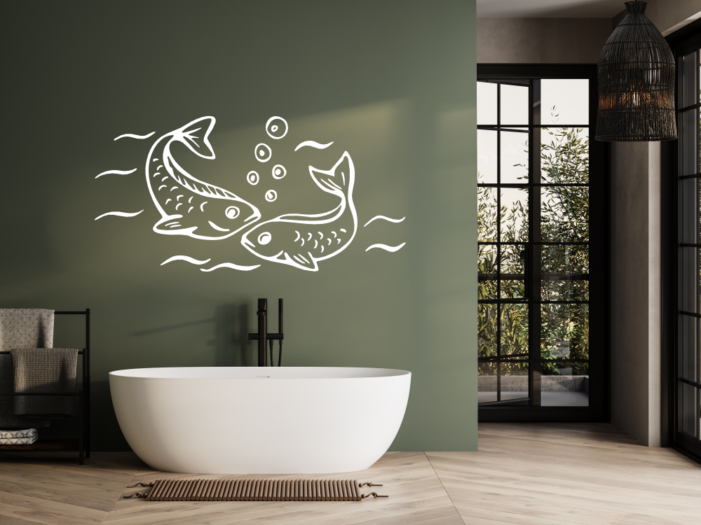 Das Wandtattoo mit Fischpärchen kann aus jedem noch so tristen Badezimmer eine echte Wellnessoase machen. Denn der Aufkleber mit Fische nimmt seine Betrachter mit in eine Welt der Ruhe, Gediegenheit und Entspannung. Lassen Sie sich beim Anblick dieser tollen Dekorationsidee inspirieren und gönnen Sie sich mal wieder eine richtige Auszeit. Mit diesem Wandmotiv von lifestyle-decor.de klappt das garantiert. Verpassen Sie Ihrer Räumlichkeit ein einzigartiges Ambiente, in dem Sie und auch Ihre Gäste sich pudelwohl fühlen können. Da das Wandbild in den verschiedensten Farben erhältlich ist, passt es ganz sicher auch zu Ihrer Einrichtung.