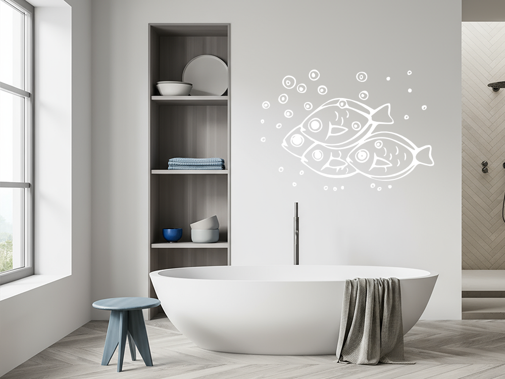 Ein Wandtattoo mit Fischschwarm eignet sich nicht nur für den Einsatz im Bad oder im Wellnessbereich. Auch ein Kinderzimmer kann mit einem Aufkleber mit Fische verschönert werden. Denn die Bewohner der Meere und Seen strahlen Ruhe und Entspannung aus, was sich auf das Raumklima übertragen wird. Setzen Sie solch einen Wandsticker ein, um die gesamte Stimmung in einer Räumlichkeit zu verbessern oder verpassen Sie einem Zimmer gekonnt ein Highlight. Wählen Sie dazu das Wandtattoo einfach in Ihrer Lieblingsfarbe aus und achten Sie auch auf die Passgenauigkeit zu anderen Einrichtungsgegenständen. Schaffen Sie ein harmonisches Raumklima, dass Sie beruhigen wird.