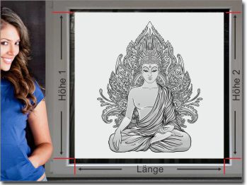 Vermessen Sie die zu beklebende Glasfläche in der Länge und überlegen Sie sich, wie hoch das Motiv bzw. die Folie sein soll. Um eine schöne Optik zu erzielen empfehlen wir, einige cm Abstand zum oberen Rahmen zu lassen.