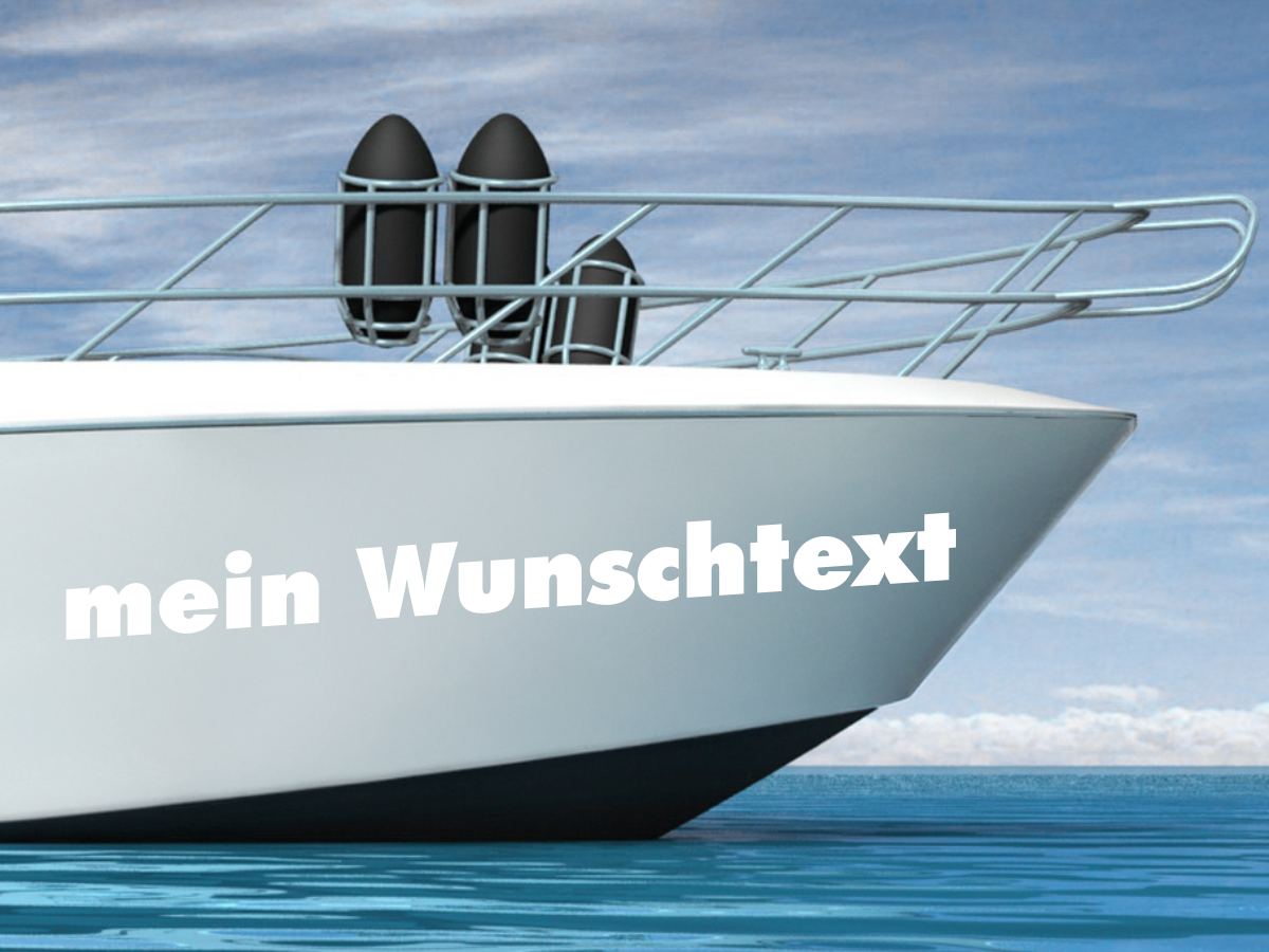 Bei diesem tollen und hochwertigen Aufkleber für Ihr Boot haben Sie die Möglichkeit, Ihren eigenen Text einzugeben. Schaffen Sie sich einen Bootsaufkleber ganz nach Ihrem Geschmack. Alle Texte sind konturgeschnitten und ohne transparenten Hintergrund. Wir bieten eine große Auswahl an Farben.