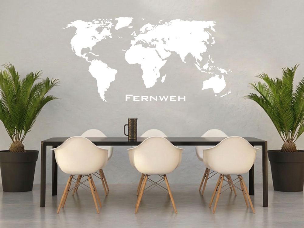 Eine Weltkarte mit dem Wort Fernweh - das ideale Design für Weltenbummler