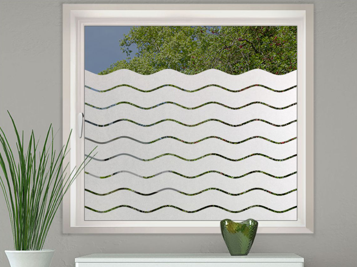 Eine Sichtschutzfolie ist ein selbstklebender Aufkleber aus einer Hochleistungsfolie (Glasdekorfolie) mit einem edlen Sandstrahleffekt, geeignet für glatte Glasflächen. Optisch vergleichbar mit geätztem Glas bzw. Milchglas ist die Sichtschutzfolie blickdicht und dennoch 70% lichtdurchlässig. Tageslicht geht somit kaum verloren. Die Sichtschutzfolie ist konturgeschnitten, ohne transparenten Hintergrund und wird montagefertig mit Übertragungspapier geliefert. Dort, wo das Motiv/Text negativ ausgeschnitten ist, bleibt die Glasfläche sichtbar.