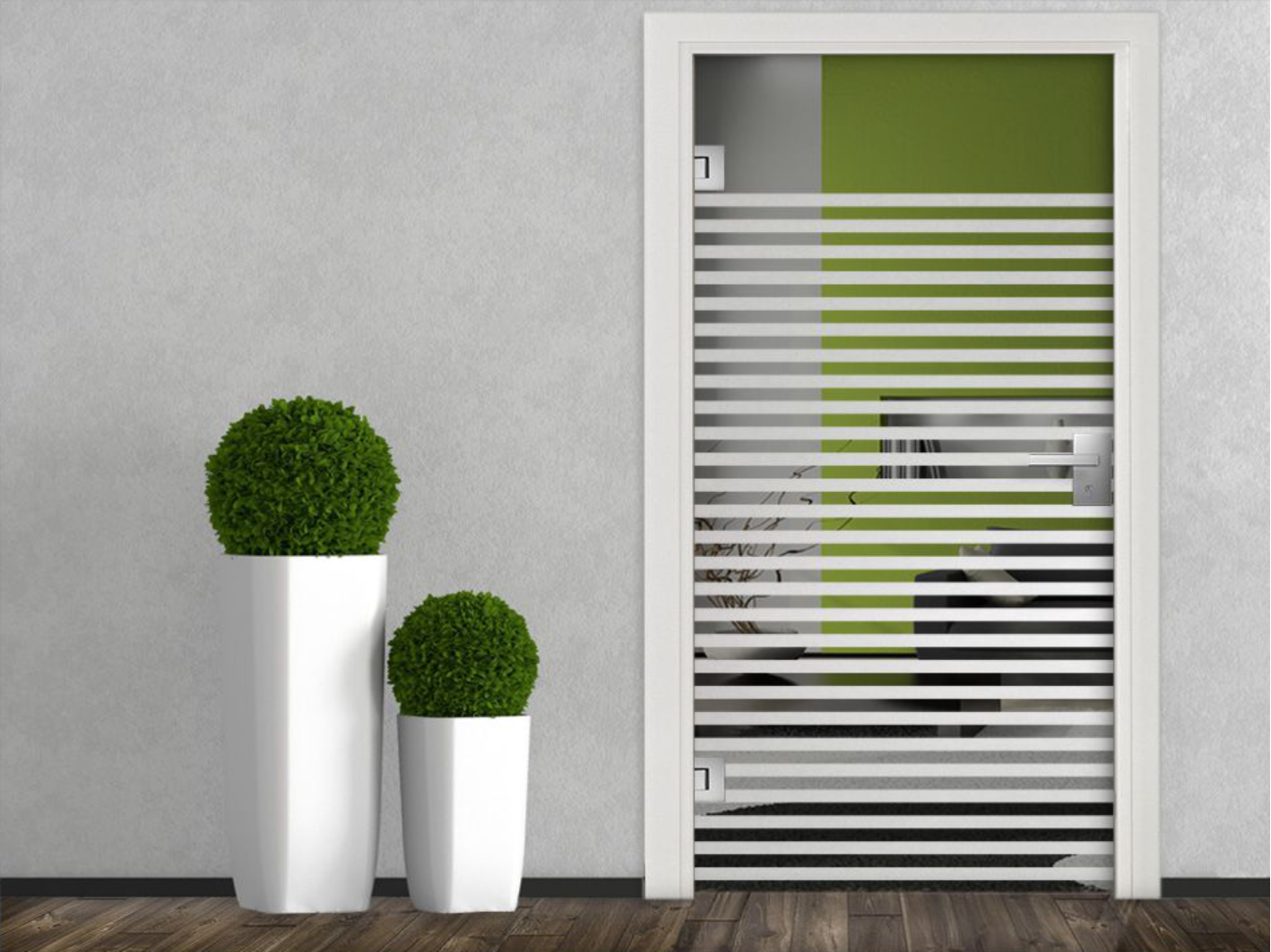 Eine Sichtschutzfolie ist ein selbstklebender Aufkleber aus einer Hochleistungsfolie (Glasdekorfolie) mit einem edlen Sandstrahleffekt, geeignet für glatte Glasflächen. Optisch vergleichbar mit geätztem Glas bzw. Milchglas ist die Sichtschutzfolie blickdicht und dennoch 70% lichtdurchlässig. Tageslicht geht somit kaum verloren. Die Sichtschutzfolie ist konturgeschnitten, ohne transparenten Hintergrund und wird montagefertig mit Übertragungspapier geliefert. Dort, wo das Motiv/Text negativ ausgeschnitten ist, bleibt die Glasfläche sichtbar.