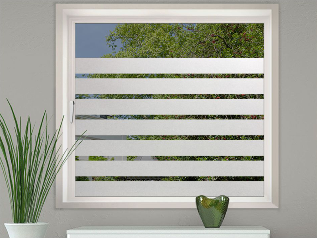 Eine Sichtschutzfolie ist ein selbstklebender Aufkleber aus einer Hochleistungsfolie (Glasdekorfolie) mit einem edlen Sandstrahleffekt, geeignet für glatte Glasflächen. Optisch vergleichbar mit geätztem Glas bzw. Milchglas ist die Sichtschutzfolie blickdicht und dennoch 70% lichtdurchlässig. Tageslicht geht somit kaum verloren. Die Sichtschutzfolie ist konturgeschnitten, ohne transparenten Hintergrund und wird montagefertig mit Übertragungspapier geliefert. Dort, wo das Motiv/Text negativ ausgeschnitten ist, bleibt die Glasfläche sichtbar.