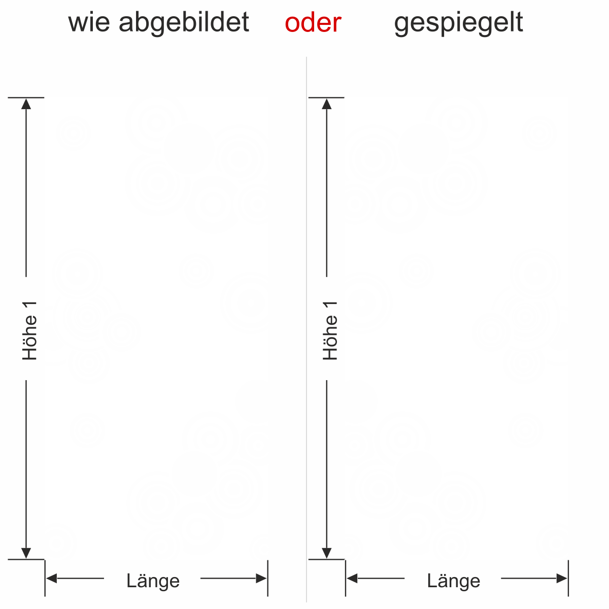 gespiegelt = Motiv/Text von innen geklebt und von außen lesbar