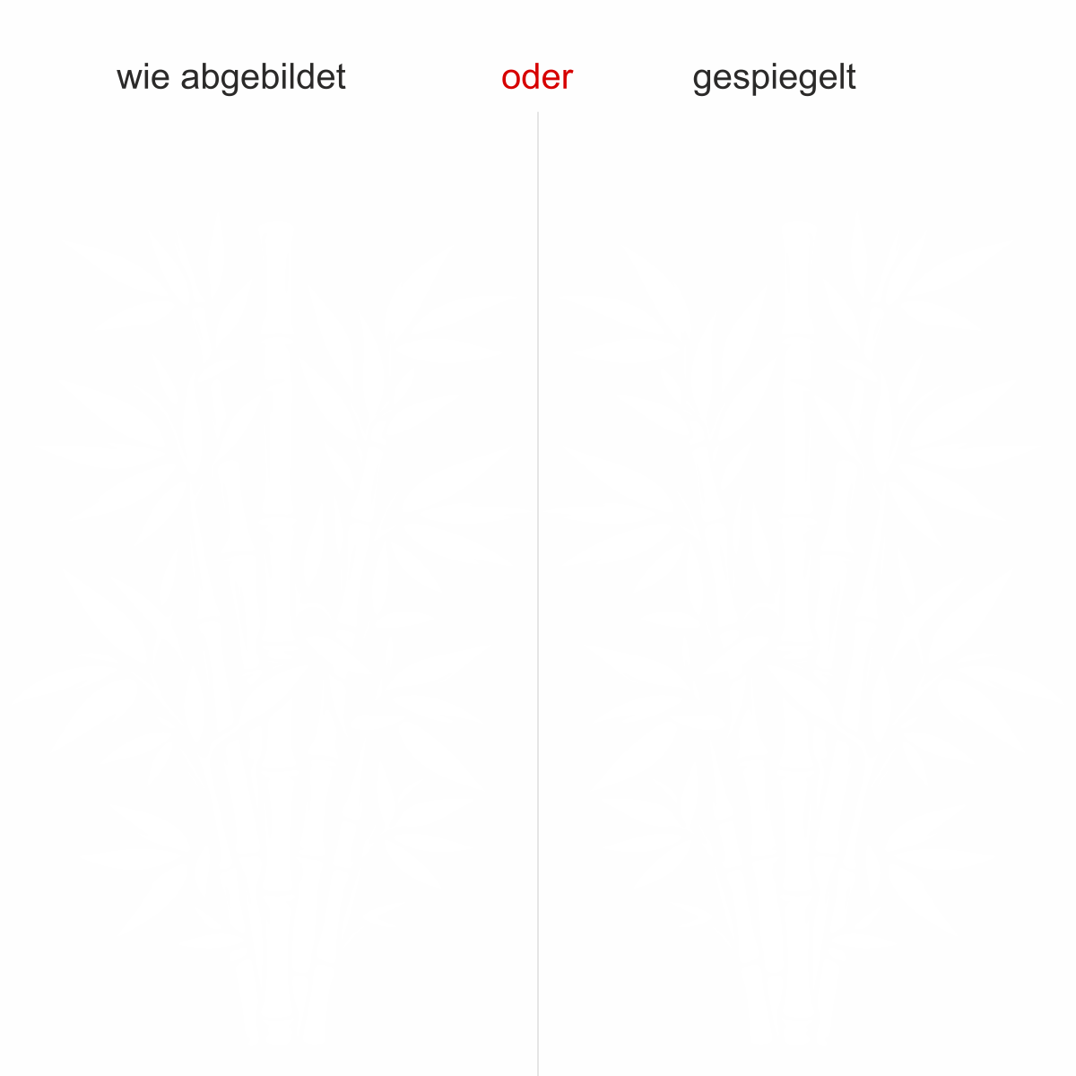 Objekt gespiegelt, Text wie abgebildet = Motiv/Text von außen geklebt und von außen lesbar, jedoch Motiv auf der anderen Seite