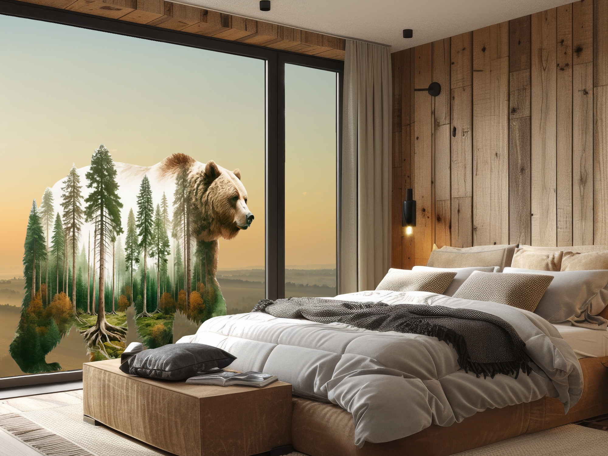 Passgenaues Glastattoo Bär Walddesign in warmen Farbtönen wird zum Blickfang