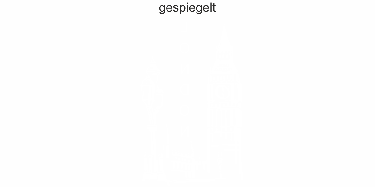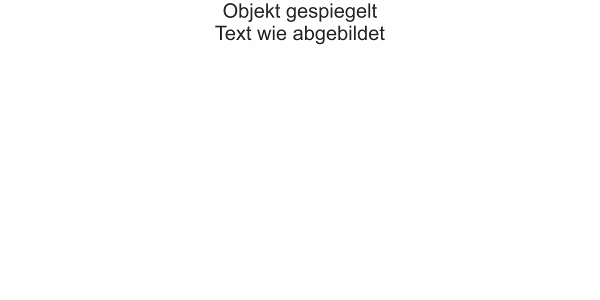 Objekt gespiegelt, Text wie abgebildet = Motiv/Text von außen geklebt und von außen lesbar, jedoch Motiv auf der anderen Seite