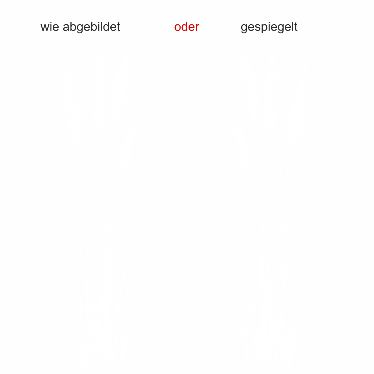 Objekt gespiegelt, Text wie abgebildet = Motiv/Text von außen geklebt und von außen lesbar, jedoch Motiv auf der anderen Seite
