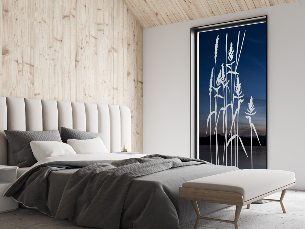 Abstraktes Grasmotiv mit feiner Struktur und ruhiger Wirkung als Fensteraufkleber