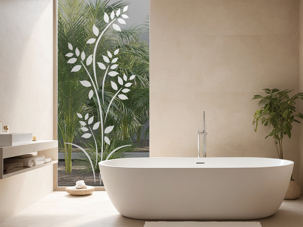 Die Glasdekorfolie kann problemlos im Innen-/Außen- und Nassbereich eingesetzt werden, also auch im Bad- oder Wellnessbereich.