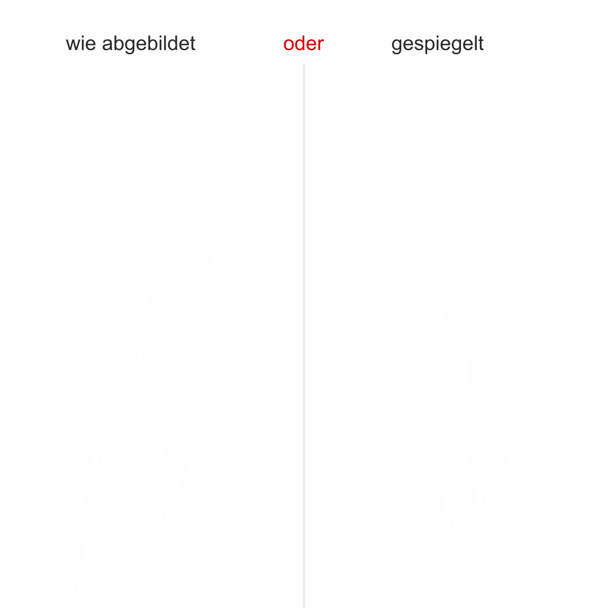 Objekt gespiegelt, Text wie abgebildet = Motiv/Text von außen geklebt und von außen lesbar, jedoch Motiv auf der anderen Seite