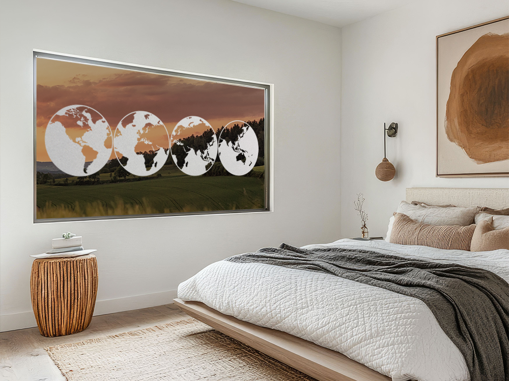 Zeigen Sie Ihre Weltoffenheit und Menschenfreude. Dieser Fensteraufkleber mit Weltkarte als Symbol gibt nicht nur privaten Wohnräumen ein ganz besonderes Flair. Auch im Büro der Agentur, im Konferenzzimmer des großen Konzerns oder im Schaufenster der Boutique macht sich das Motiv sehr gut. Mit Nord- und Südamerika, Afrika und Europa, Asien und Australien sind auf jeder Weltkarte die wichtigen Kontinente zu sehen. Auch im Empfangsbereich kann das Glastattoo auf einer gläsernen Trennwand, einem Fenster oder einer anderen glatten Glasoberfläche angebracht werden. Mitarbeiter, Kollegen und Kunden werden gleichermaßen begeistert sein.
