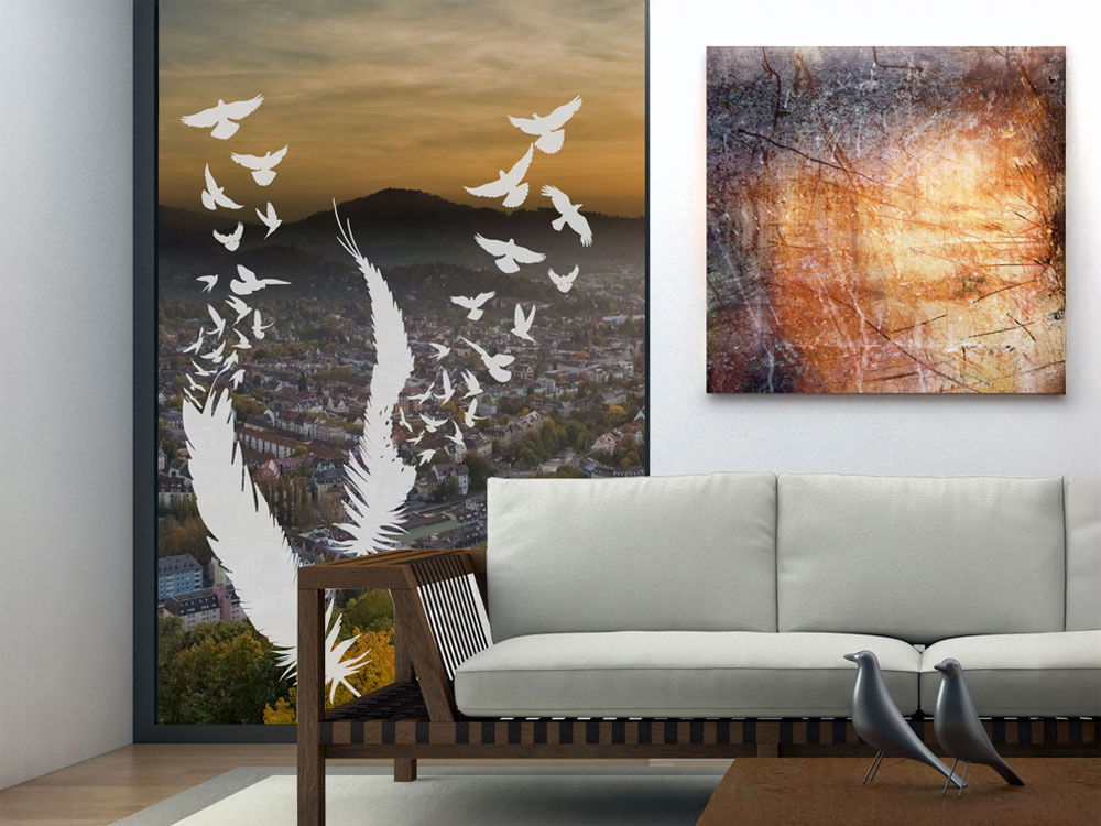 Leicht wie eine Feder – so möchten wir uns in den eigenen vier Wänden fühlen. Die Freizeit mit den Lieben genießen, unseren Hobbies nachgehen oder einfach mal zur Ruhe kommen. Die satinierte Folie für Glas mit Feder und Vögel verbreitet in jedem noch so tristen Raum eine entspannte Atmosphäre. Die frische Kombination aus Feder und Vogelmotiv erlaubt es, diesen Fenstersticker im Wohnzimmer ebenso einzusetzen wie im Schlafzimmer. Statten Sie einen gewünschten Raum auf diese Weise mit einem Eyecatcher aus, den Sie in seiner Größe frei wählen können. Fenster, Glastür und Glasfront erhalten damit gleichermaßen ein neues, frisches Aussehen.