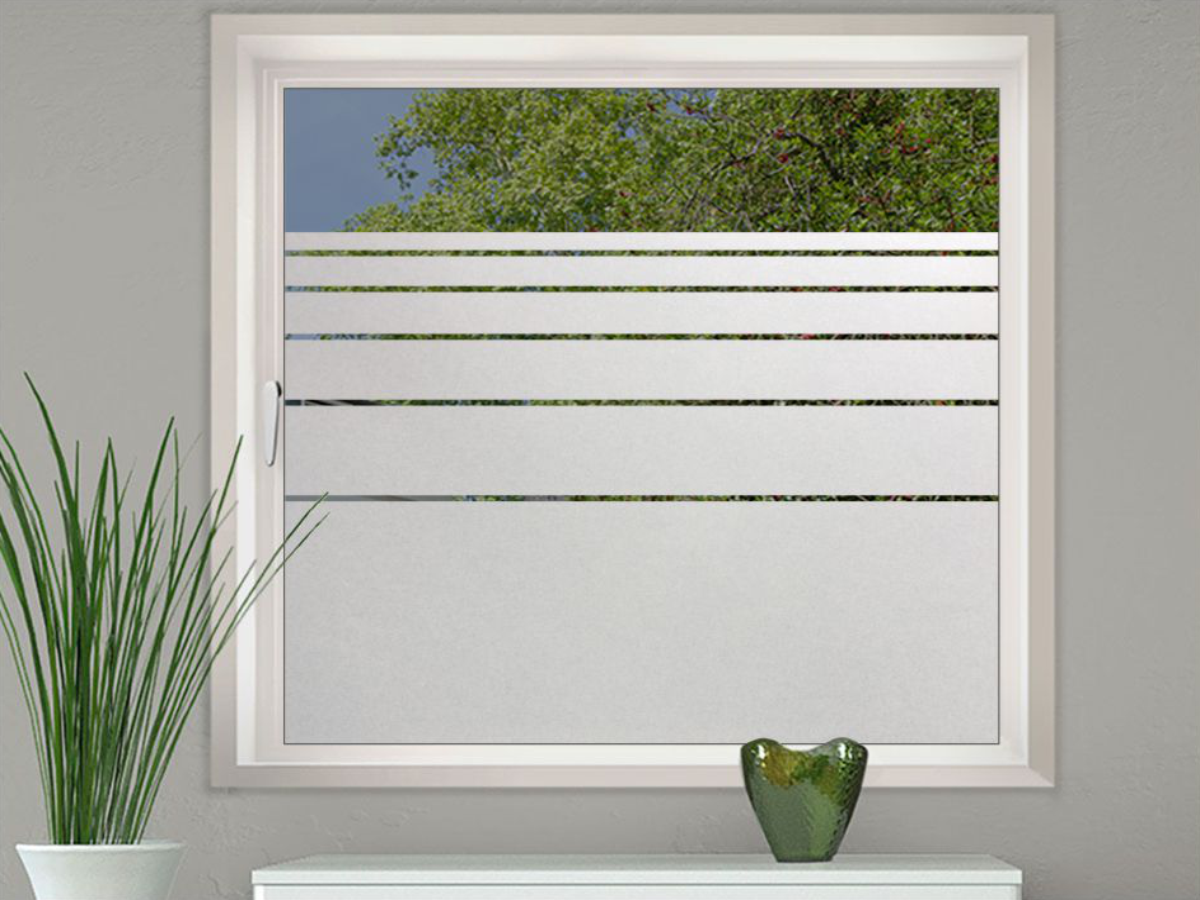 Eine Sichtschutzfolie ist ein selbstklebender Aufkleber aus einer Hochleistungsfolie (Glasdekorfolie) mit einem edlen Sandstrahleffekt, geeignet für glatte Glasflächen. Optisch vergleichbar mit geätztem Glas bzw. Milchglas ist die Sichtschutzfolie blickdicht und dennoch 70% lichtdurchlässig. Tageslicht geht somit kaum verloren. Die Sichtschutzfolie ist konturgeschnitten, ohne transparenten Hintergrund und wird montagefertig mit Übertragungspapier geliefert. Dort, wo das Motiv/Text negativ ausgeschnitten ist, bleibt die Glasfläche sichtbar.