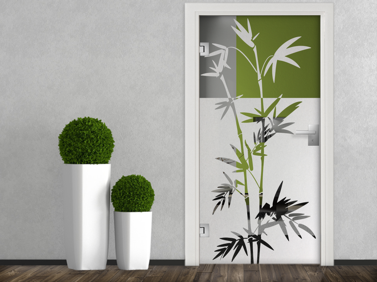 Dort, wo Motiv und/oder Text ausgeschnitten sind, bleibt die Glasfläche sichtbar