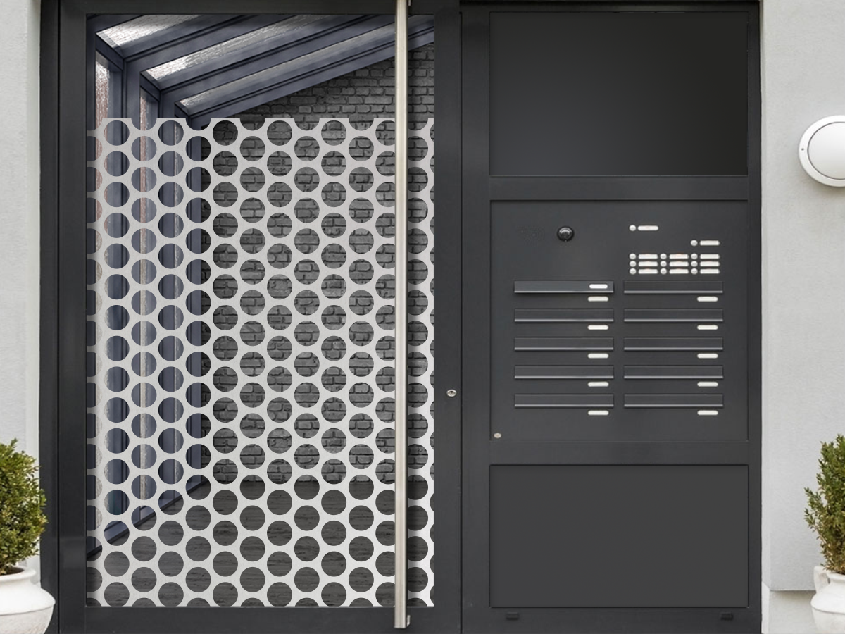 Sichtschutz Fensterfolie mit ca. 7 cm großen Kreisen und ca. 1,5 cm Abstand dazwischen