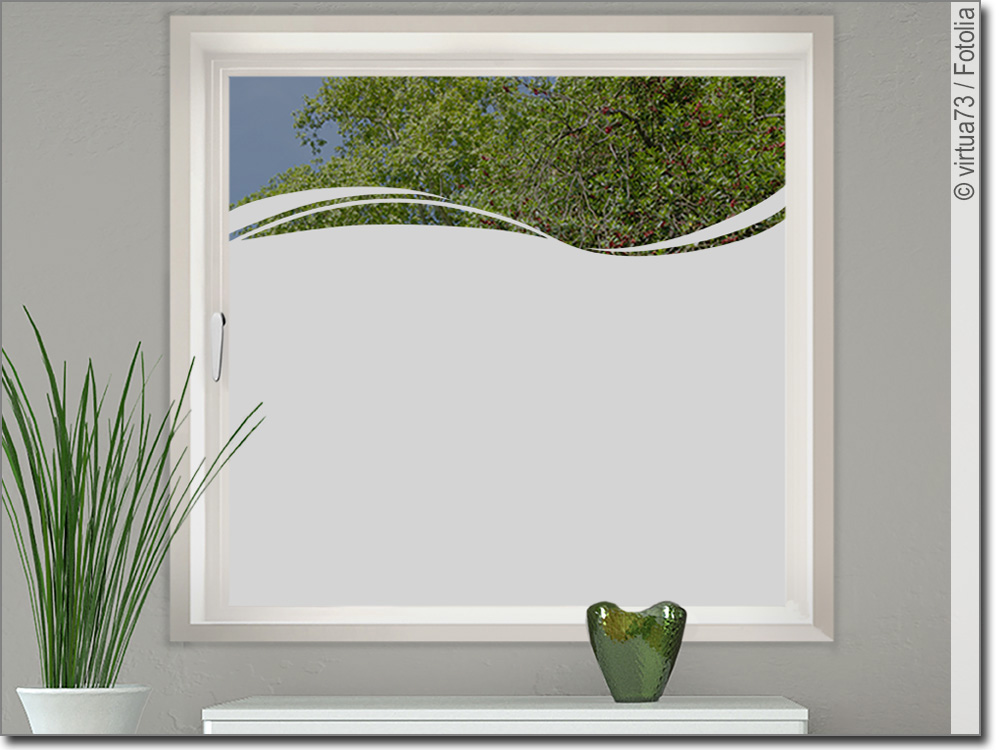 Eine Sichtschutzfolie ist ein selbstklebender Aufkleber aus einer Hochleistungsfolie (Glasdekorfolie) mit einem edlen Sandstrahleffekt, geeignet für glatte Glasflächen. Optisch vergleichbar mit geätztem Glas bzw. Milchglas ist die Sichtschutzfolie blickdicht und dennoch 70% lichtdurchlässig. Tageslicht geht somit kaum verloren. Die Sichtschutzfolie ist konturgeschnitten, ohne transparenten Hintergrund und wird montagefertig mit Übertragungspapier geliefert. Dort, wo das Motiv/Text negativ ausgeschnitten ist, bleibt die Glasfläche sichtbar.