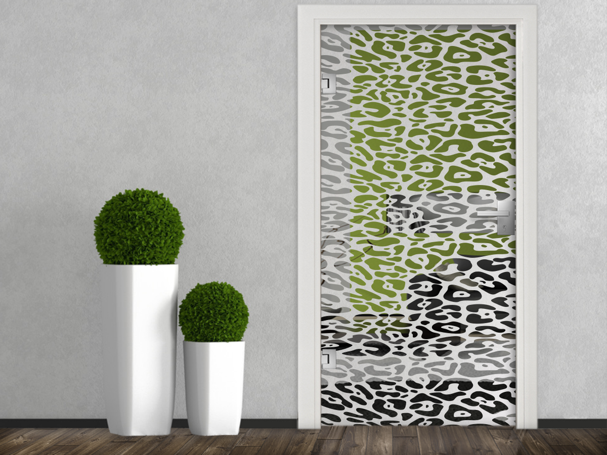 Dort, wo Motiv und/oder Text ausgeschnitten sind, bleibt die Glasfläche sichtbar