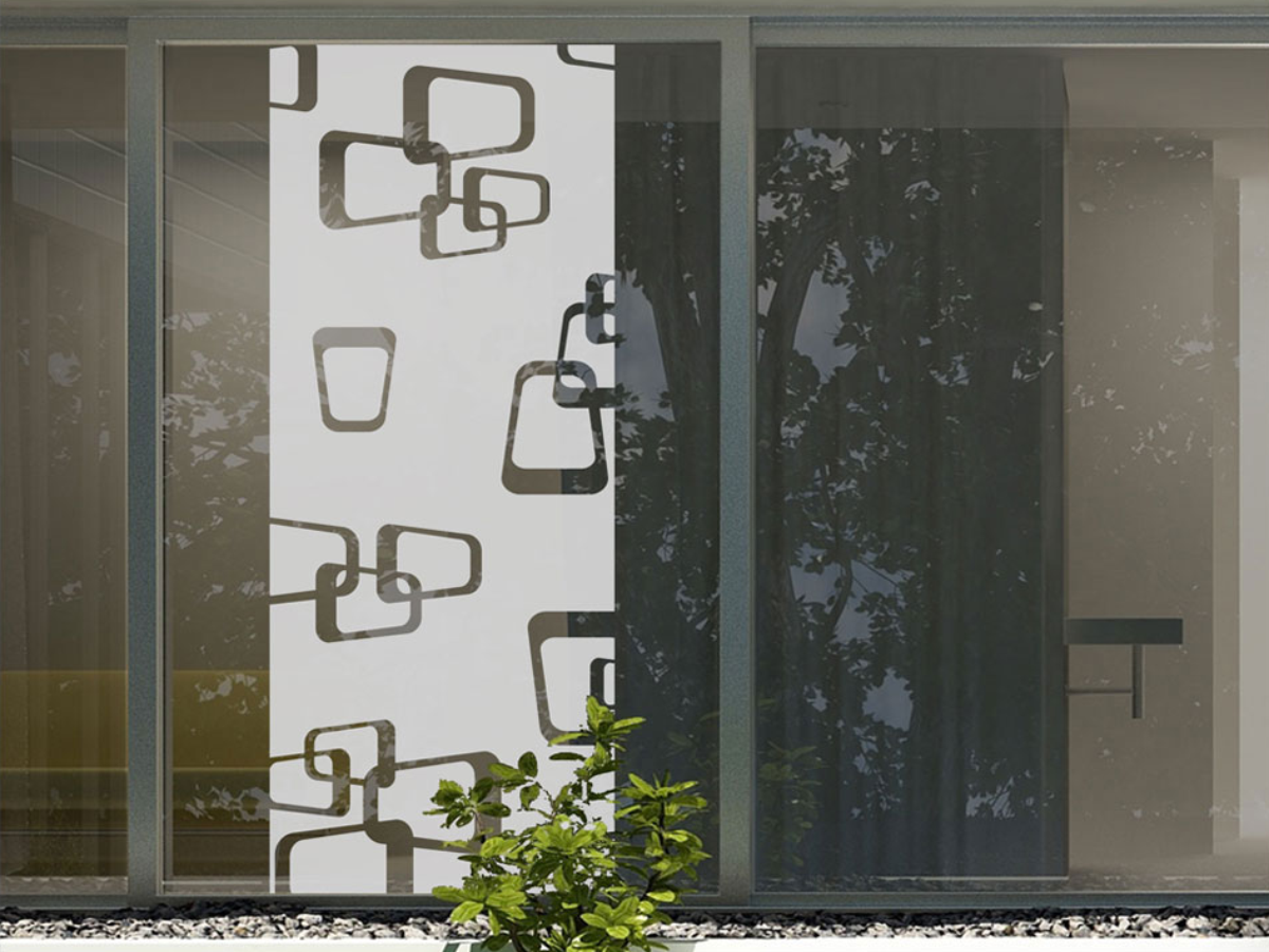 Eine Sichtschutzfolie ist ein selbstklebender Aufkleber aus einer Hochleistungsfolie (Glasdekorfolie) mit einem edlen Sandstrahleffekt, geeignet für glatte Glasflächen. Optisch vergleichbar mit geätztem Glas bzw. Milchglas ist die Sichtschutzfolie blickdicht und dennoch 70% lichtdurchlässig. Tageslicht geht somit kaum verloren. Die Sichtschutzfolie ist konturgeschnitten, ohne transparenten Hintergrund und wird montagefertig mit Übertragungspapier geliefert. Dort, wo das Motiv/Text negativ ausgeschnitten ist, bleibt die Glasfläche sichtbar.