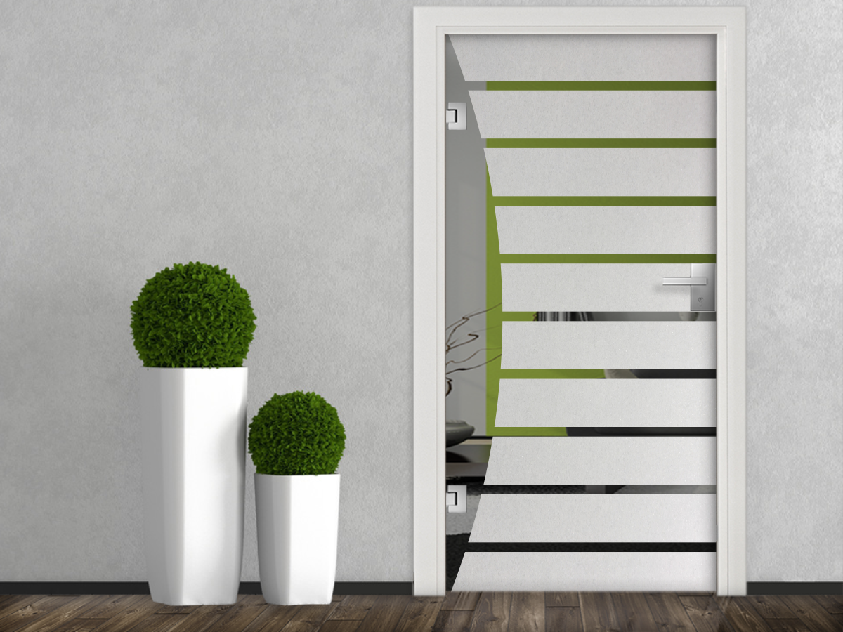 Glastür Milchglasfolie Streifenbogen