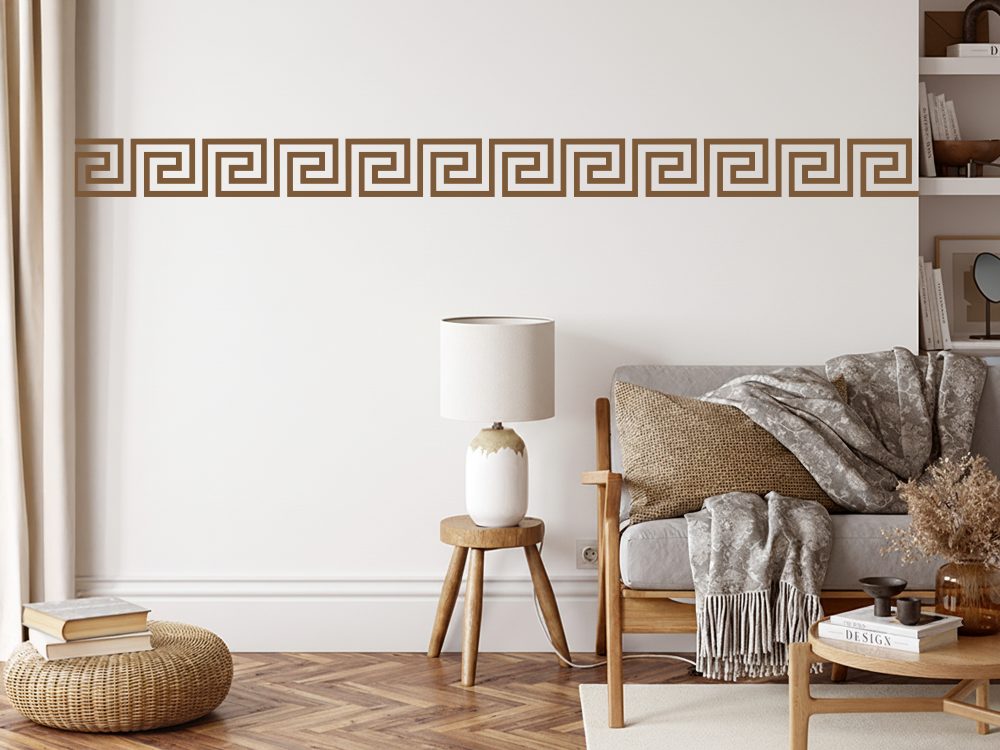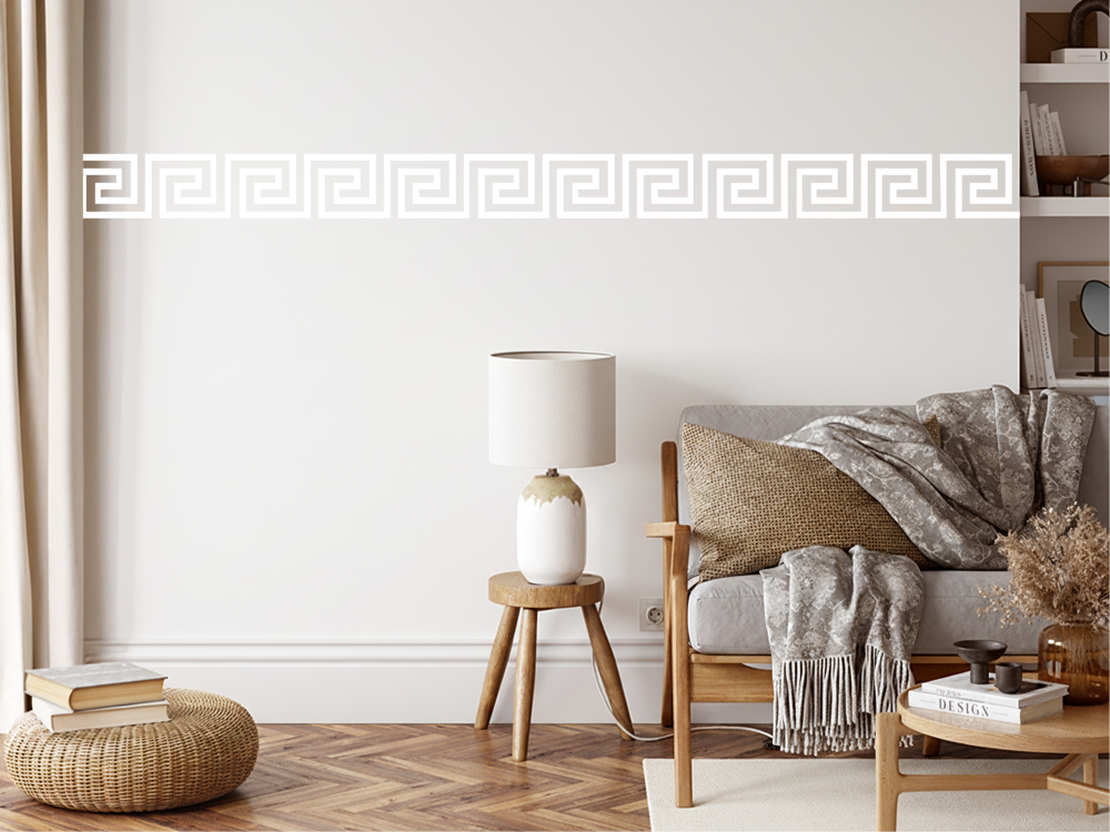 Eine griechische Bordüre ist hervorragend für den Einsatz an der Schlafzimmerwand oder an der Wohnzimmerwand geeignet. Holen Sie sich mit diesem Wandaufkleber einen Hauch Griechenland in die eigenen vier Wände und entdecken Sie den neuen Charme Ihrer Wohnräume. Dieses Wandtattoo lässt sich kinderleicht an eine Wand anbringen, ebenso ist die Bordüre zum Ausmalen geeignet. Tauchen Sie mit dieser Schablone eine Wand in gleich zwei einzigartige Farben, die einzig durch den schwungvollen Verlauf der Schablone voneinander getrennt sind. Mit dieser neuen Gestaltungsidee wird das Renovieren zum Kinderspiel.