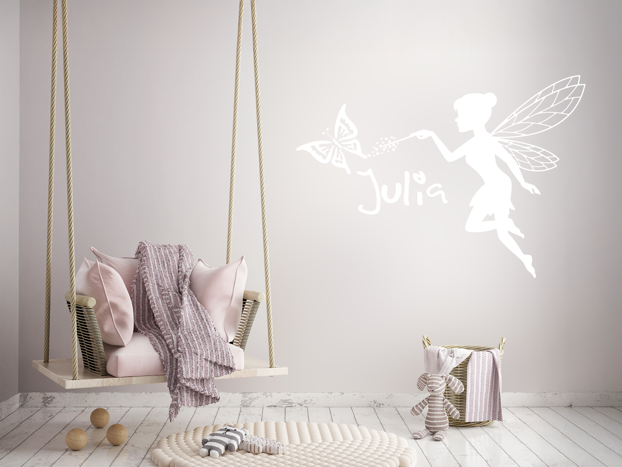 Sie möchten das Zimmer Ihres Kindes freundlich und farbenfroh gestalten? Das Wandtattoo Zauber Fee mit Wunschtext ist eine tolle Idee für die Wandgestaltung im Kinderzimmer. Besonders für kleine Mädchen sind Feen und Elfen aufregende Wesen, die die Fantasie anregen. Dieser Zauber Fee Aufkleber sorgt für eine zauberhafte und fröhliche Atmosphäre im Kinderzimmer. So lässt es sich gleich viel besser spielen und träumen. Das Wandtattoo lässt sich schnell und einfach befestigen. So verleihen Sie dem Kinderzimmer in Kürze ein völlig neues Gesicht und bereiten Ihren Kindern garantiert eine große Freude.