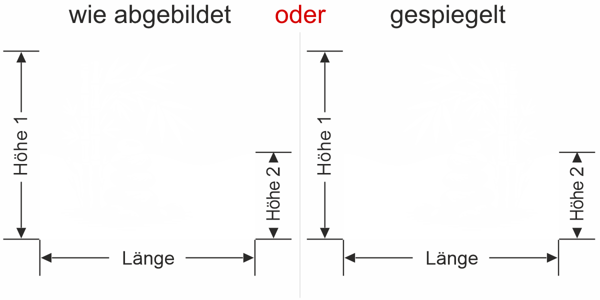Wenn Sie einen Sichtschutz über Ihre gesamte Fläche benötigen, bitte bei Höhe 1 und Höhe 2 das gleiche Maß eingeben.