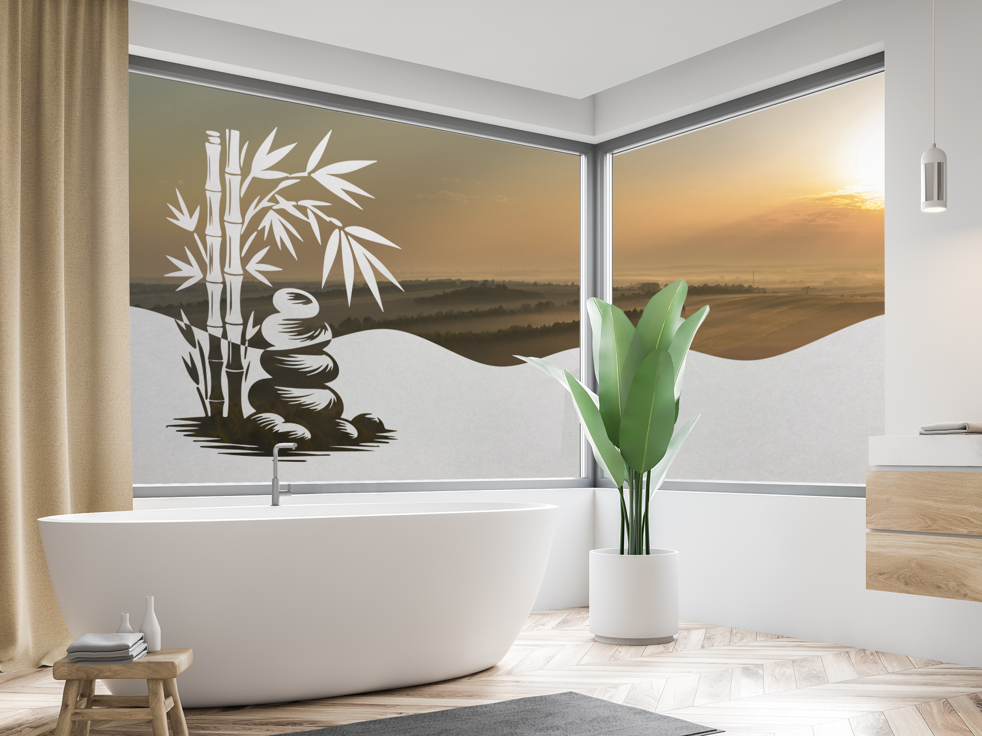 Milchglasfolie Bambusstängel mit Zen Steinen