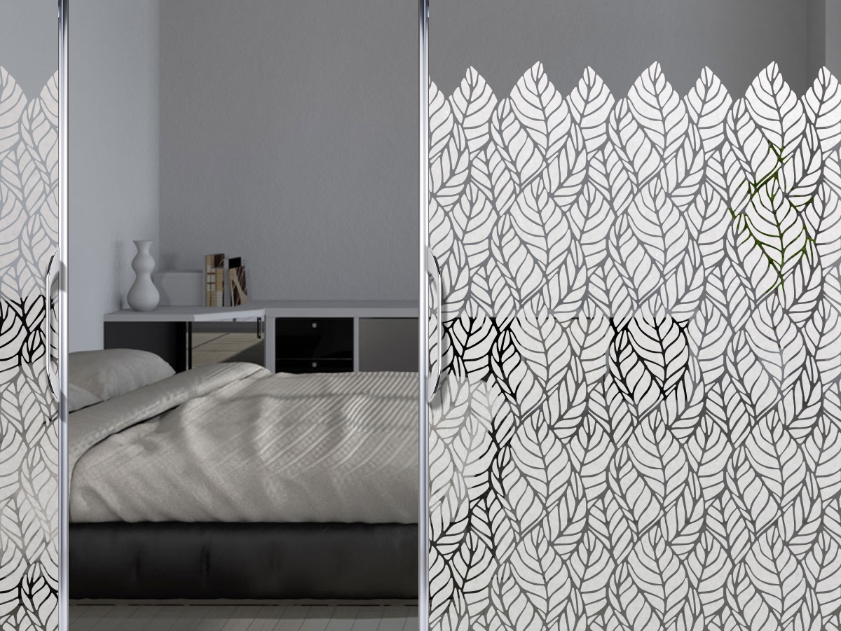 Sichtschutzfolie in Milchglasoptik mit Blättermotiv für Fenster und andere Glasflächen