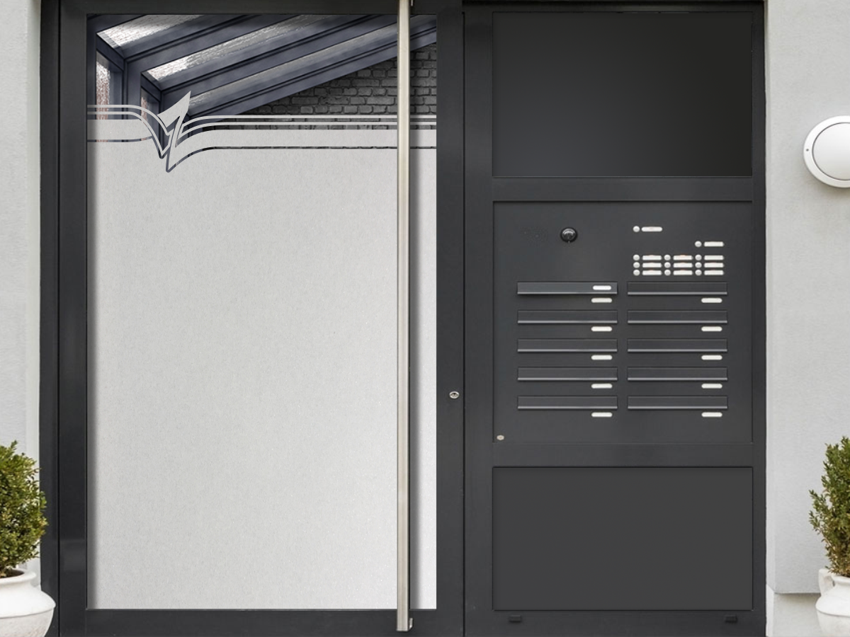 Informationen zu dieser passgenauen Milchglasfolie für Eingangstüren aus Glas
