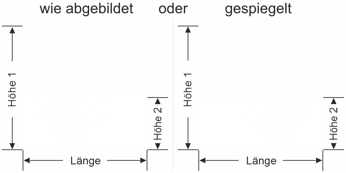 Anschließend tragen Sie die Maße in der Bestellmaske in die Kästchen „Höhe 1“ und „Höhe 2“ sowie „Länge“ ein.