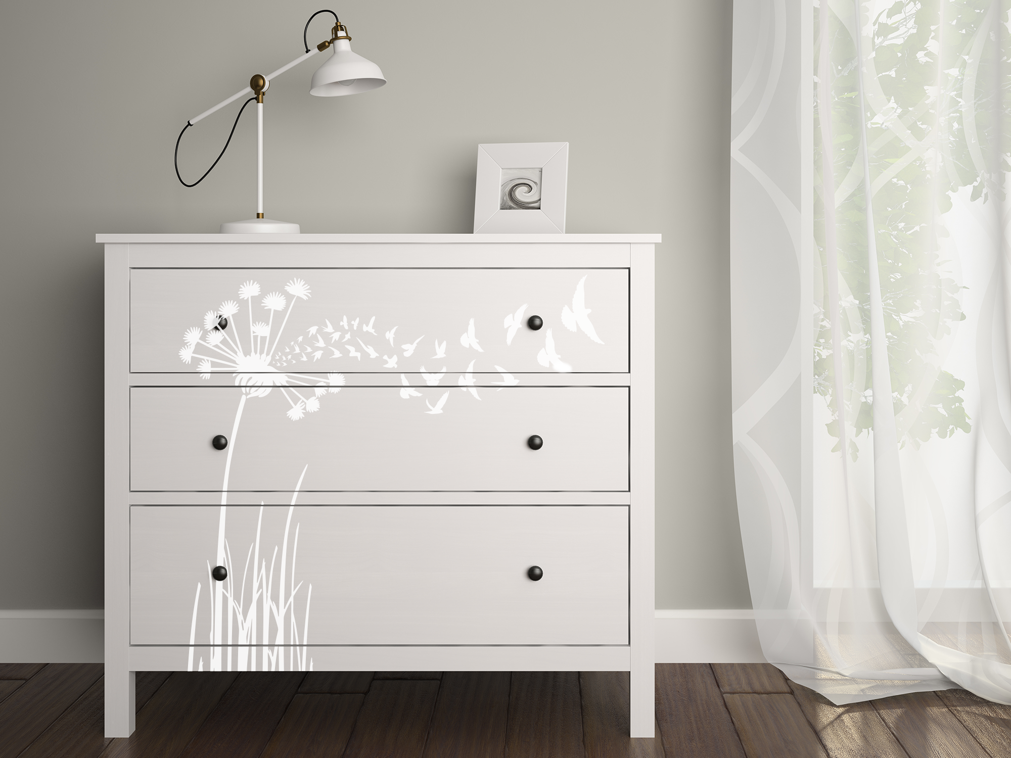 Der Möbelaufkleber Löwenzahn bringt Frische ins Zuhause