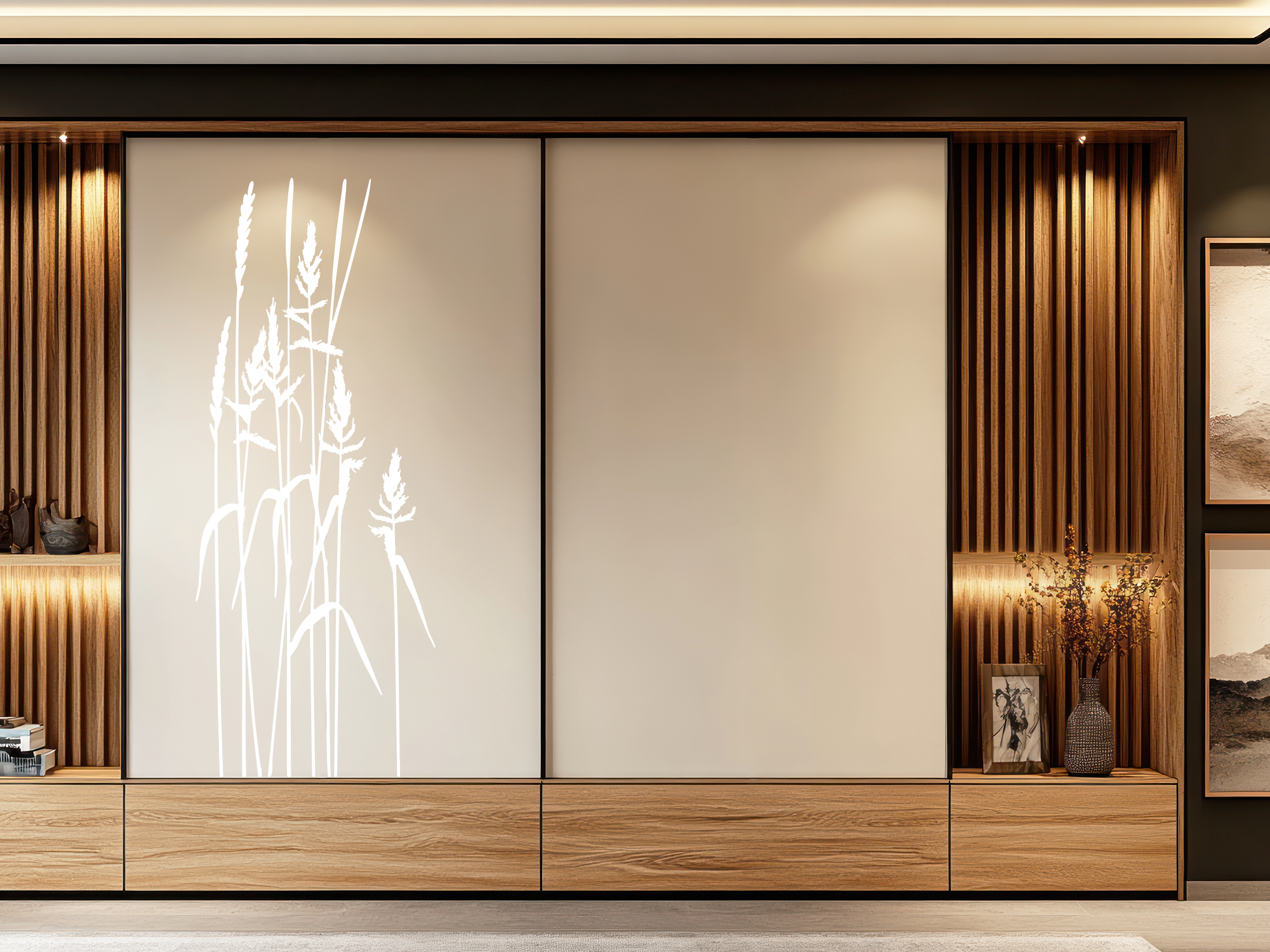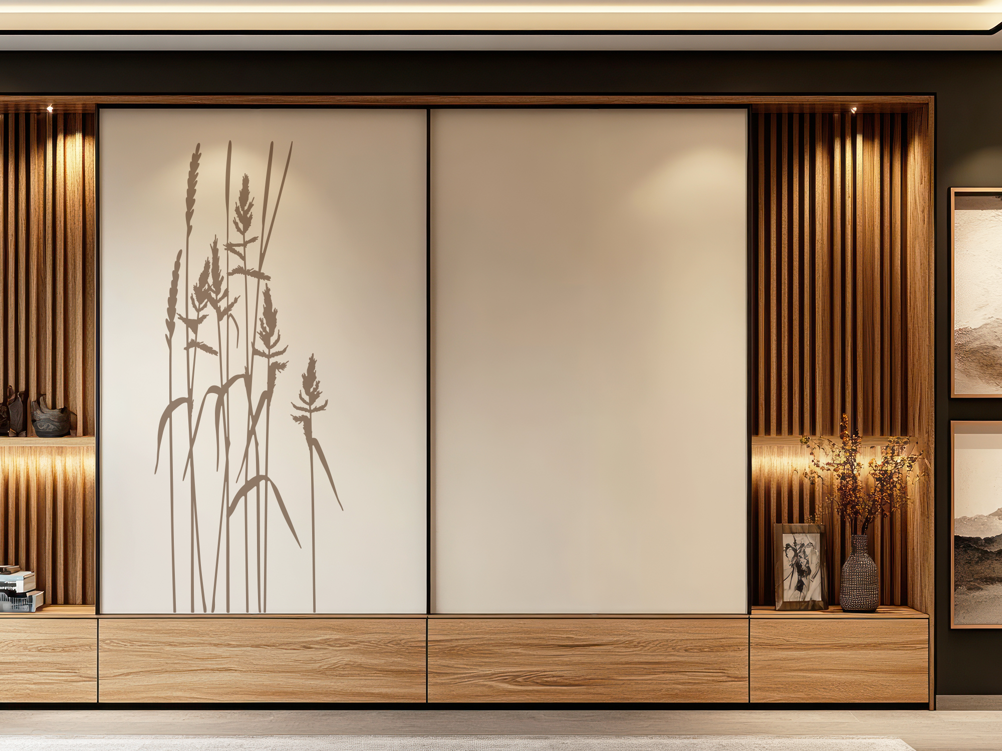 Frisches und luftiges Gras als Möbeldekor. Mit diesem Aufkleber lassen sich ganz einfach Ihre Schränke und Zimmertüren verzaubern. Sie werten Ihre Möbel mit diesen Gräsern optisch auf und verleihen Ihrem Zuhause eine gemütliche Atmosphäre.