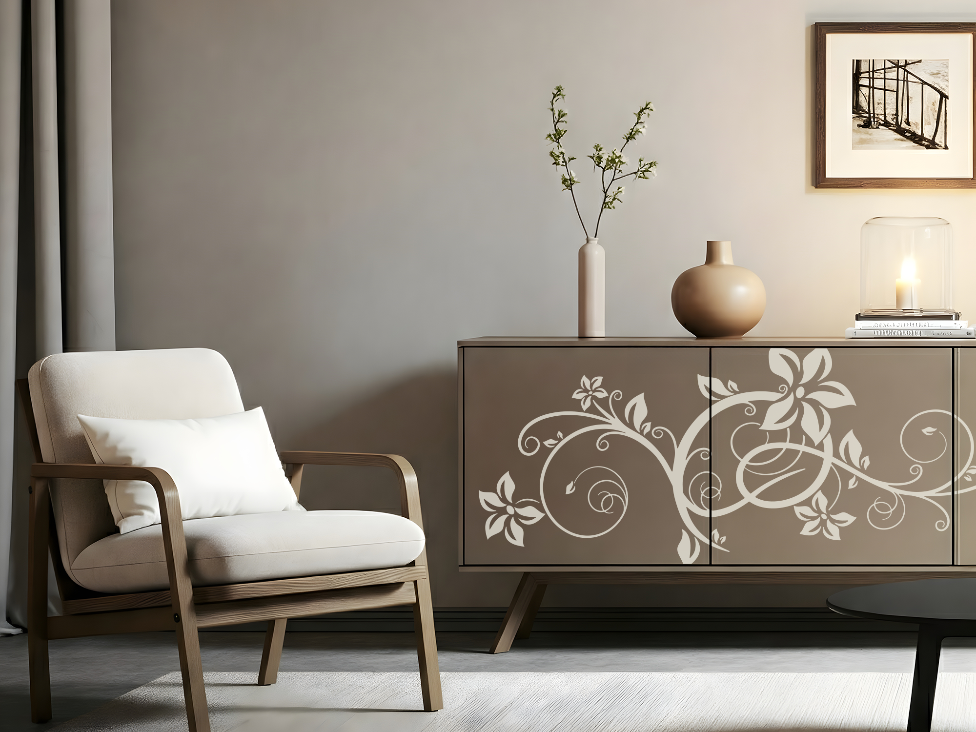 Sie wünschen sich eine Veränderung in Ihren eigenen vier Wänden? Sie suchen nach einer Möglichkeit, das Wohnzimmer, Bad oder die Küche ohne großen Aufwand neu gestalten zu können? Dieser Aufkleber für den Schrank kann ein effektives Mittel sein, um eine kreative Idee im Nu wahr werden zu lassen. Montieren Sie die seidenmatte, selbstklebende Folie mit Ornament für den Schrank auf Möbelflächen aus Kunststoff, Holz oder Glas und erfreuen Sie sich am frischen Erscheinungsbild Ihrer Möbel. Heben Sie durch solch eines Möbeltattoos Schränke oder Kommoden hervor, die im Raumkonzept unterzugehen drohen. Verschönern Sie ältere Möbel, an denen Sie sich längt sattgesehen haben. Mit diesem Möbelaufkleber ist alles möglich.
