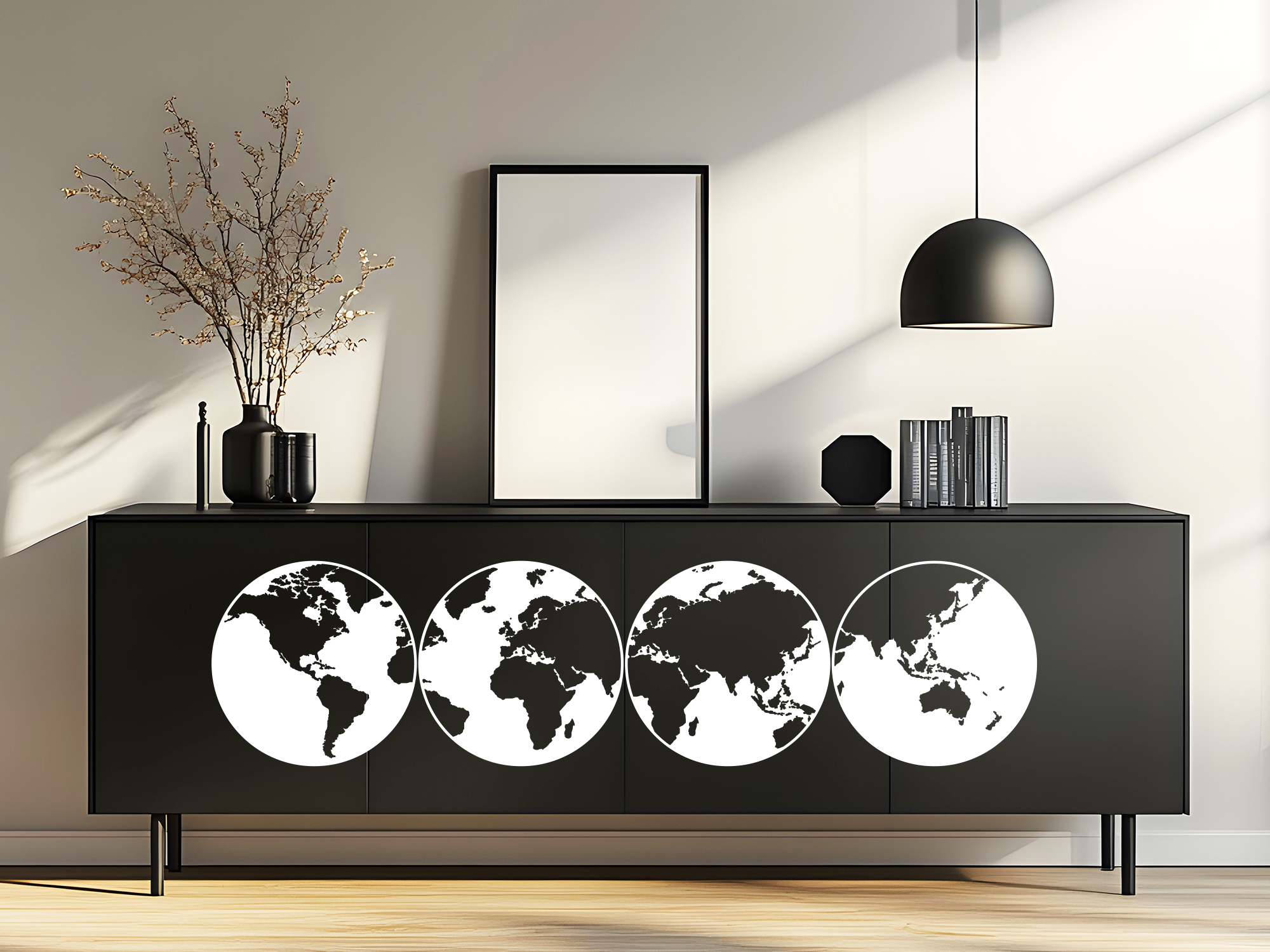 Das Möbeltattoo Weltkarte sorgt für Abwechselung