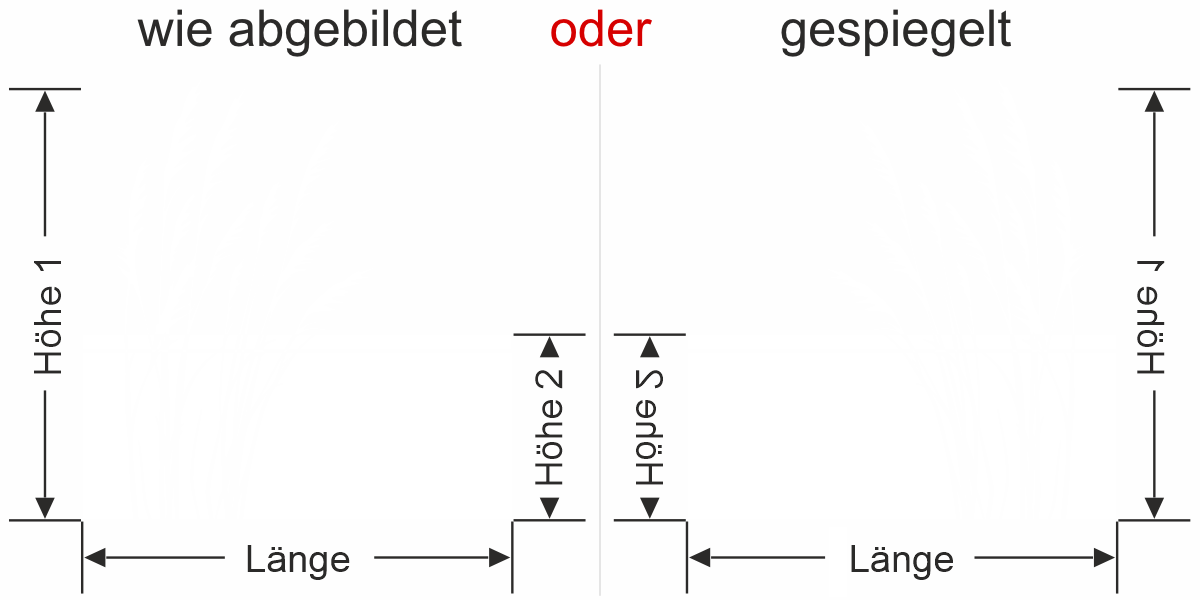 Anschließend tragen Sie die Maße in der Bestellmaske in die Kästchen „Höhe 1“ und „Höhe 2“ sowie „Länge“ ein.