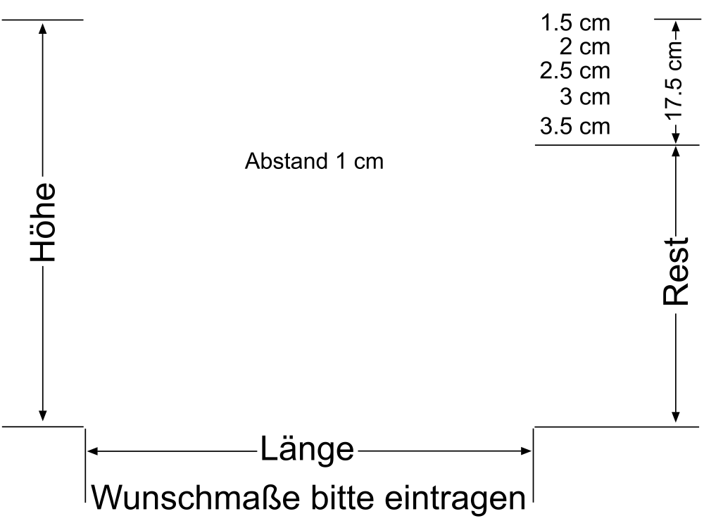 Anschließend tragen Sie die Maße in der Bestellmaske in die Kästchen „Höhe“ sowie „Länge“ ein.