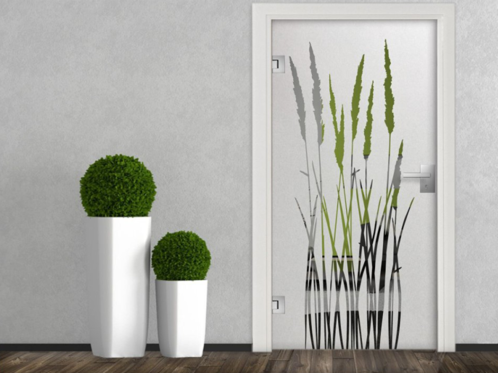 Passgenaue satinierte Klebefolie für Glastüren mit Sommergras