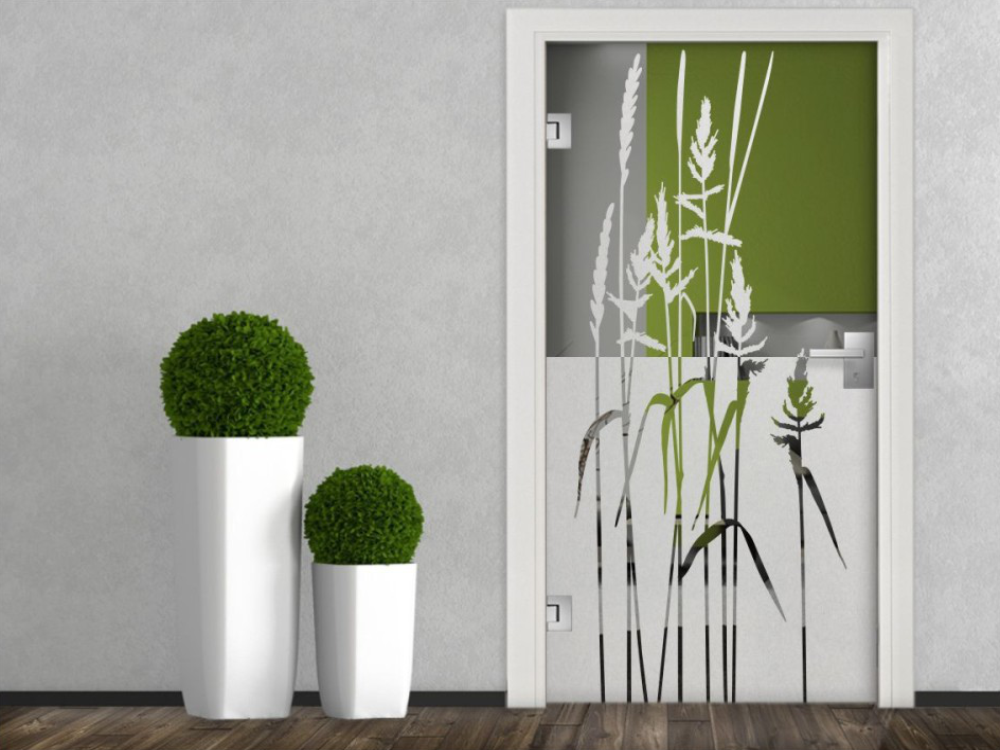 Passgenaue Milchglas Sichtschutzfolie für Glastüren mit Wildgrasmotiv