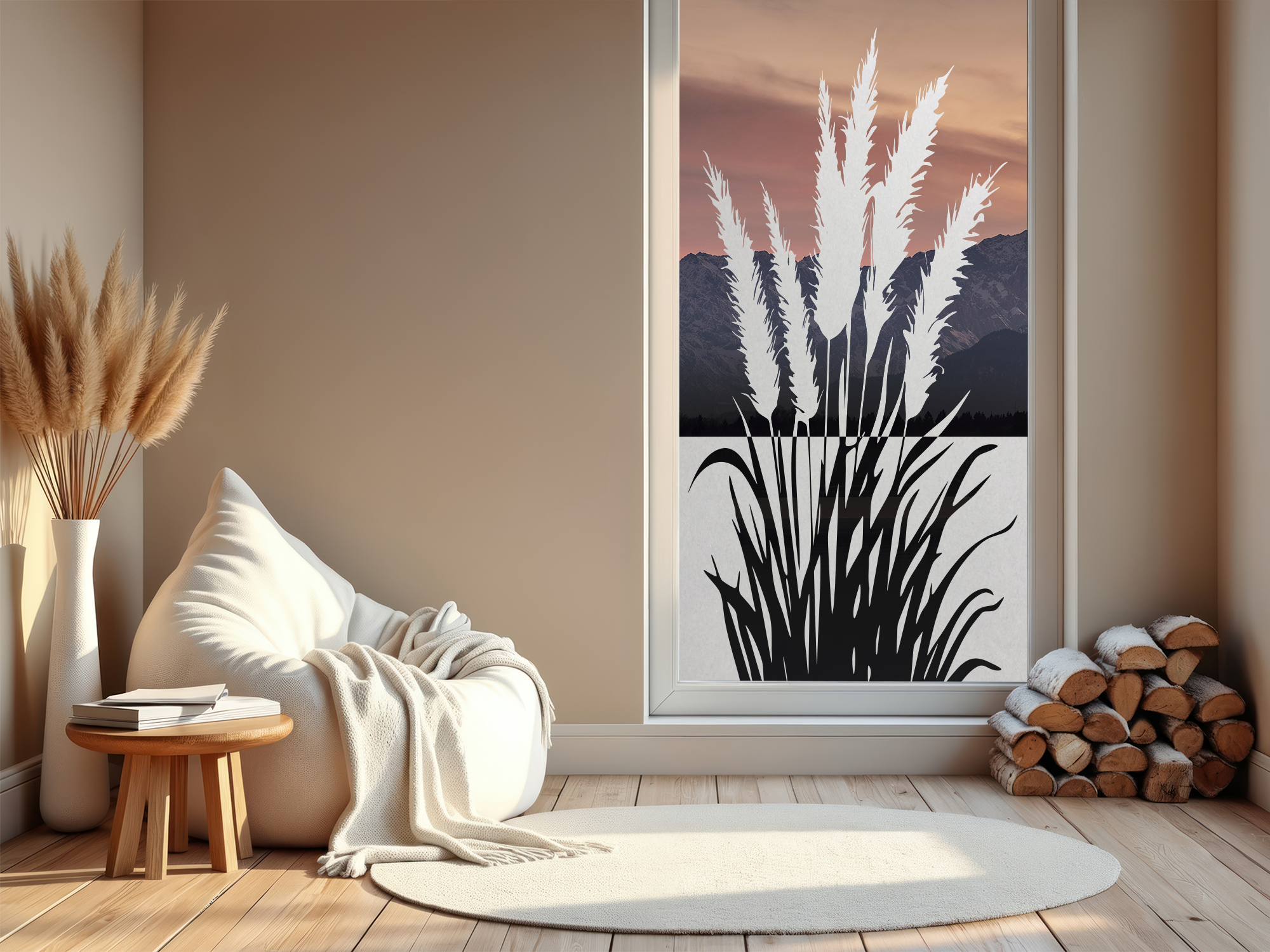 Majestätische Darstellung eines Pampasgrasmotivs als Sichtschutz