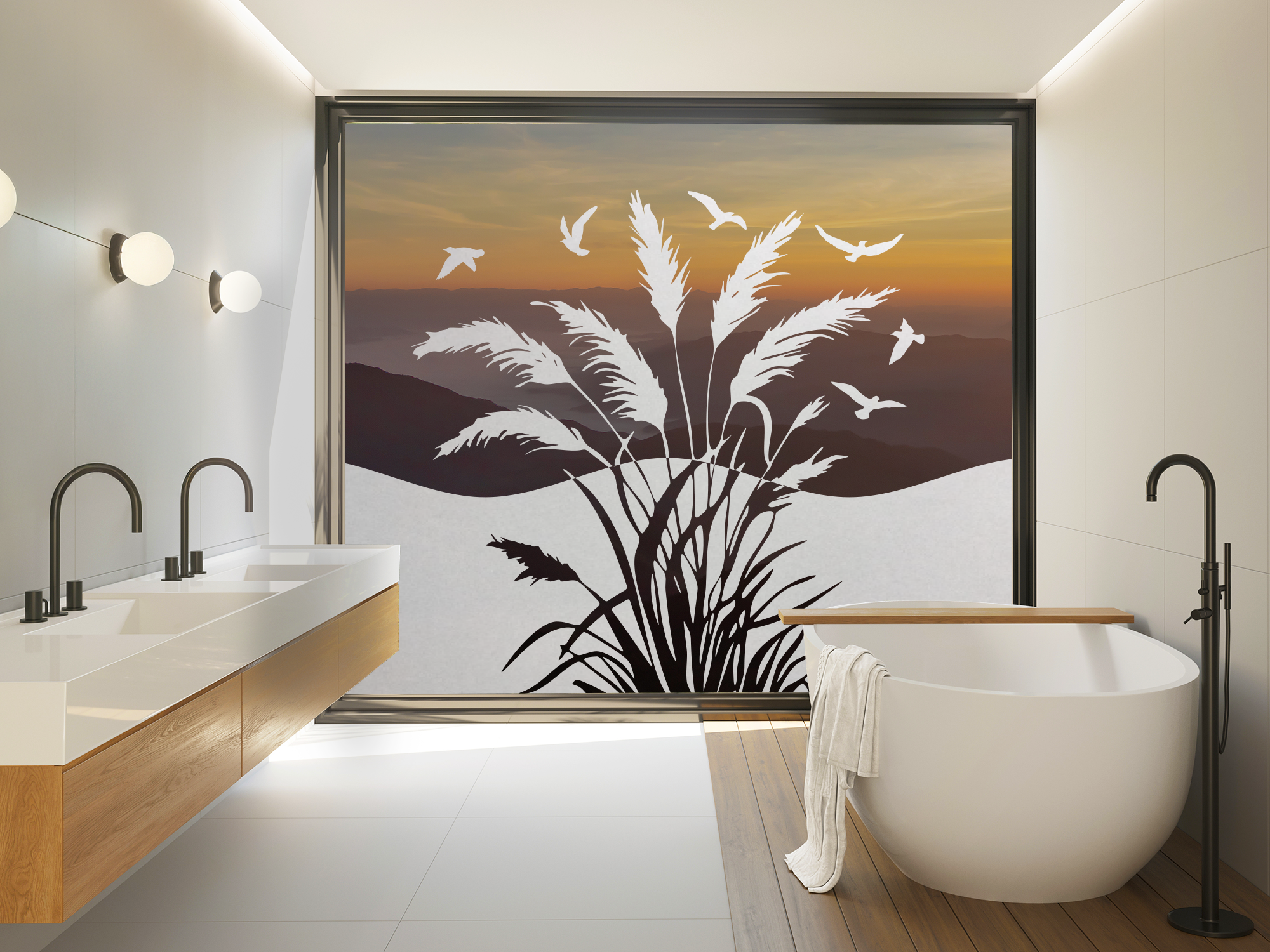 Sichtschutzfolie Pampasgras und Vögel im Wind